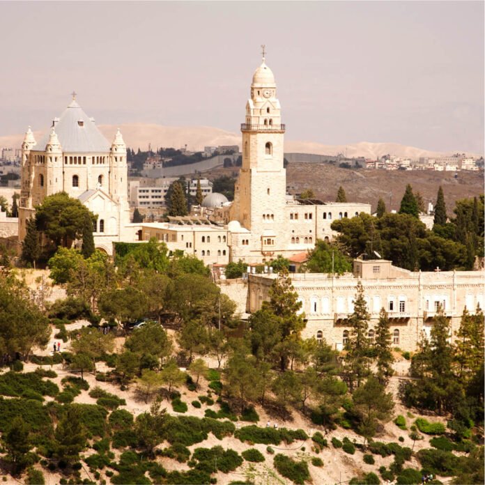 A massive Benedictine church, with its high, domed bell tower visible from many points in the city, the Church of Dormition commemorates the taking of the Virgin Mary into heaven at the end of her earthly life. The church is next to the place venerated as the tomb of King David, and almost directly above it is the Cenacle – the Upper Room where Jesus celebrated the Last Supper with his disciples. Because of the special sanctity of the site, it became the location of an early Jewish-Christian church known as the Church of the Apostles.